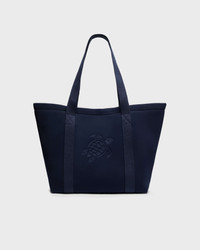 Product Detail 100% polyester A beach bag that behaves like a weekend bag. The neoprene body, soft yet structured, keeps your essentials protected while the generous shape follows you from sunbed to city stroll in effortless style. - Printed Neoprene fabric - Two cotton handles - Closed by a plastic zipper and two zamac tips etched Vilebrequin - One inside pocket zipped with a plastic zipper, two zamac tips etched Vilebrequin - Unlined, finished with a tone on tone bias. Internal and external snap buttons to fold bag - Sizes: 24.4" x 15.7" x 9.4" - Neoprene Beach Bag Solid - Unisex Beach Bag Care To take care of your Beach Bag we advise you to follow our suggestions below: - Hand wash - Dry line in the shade - Do not bleach - Do not tumble dry - Do not iron - Do not dry clean