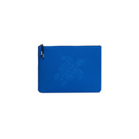 The ideal pouch to hold all the essentials, crafted from polyester and featuring a zip closure. Embellished with the iconic tone-on-tone textured turtle to add a touch of sophistication. - Closed by a zipper - External bias and Vilebrequin logo washable leather - Sizes: 9" x 6.3" - Unisex Pouch - Unisex Neoprene Pouch Solid - 100% recycled Product Information Style: Pool Model: PLLC0137-613 Color: MARRAKECH / BLUE