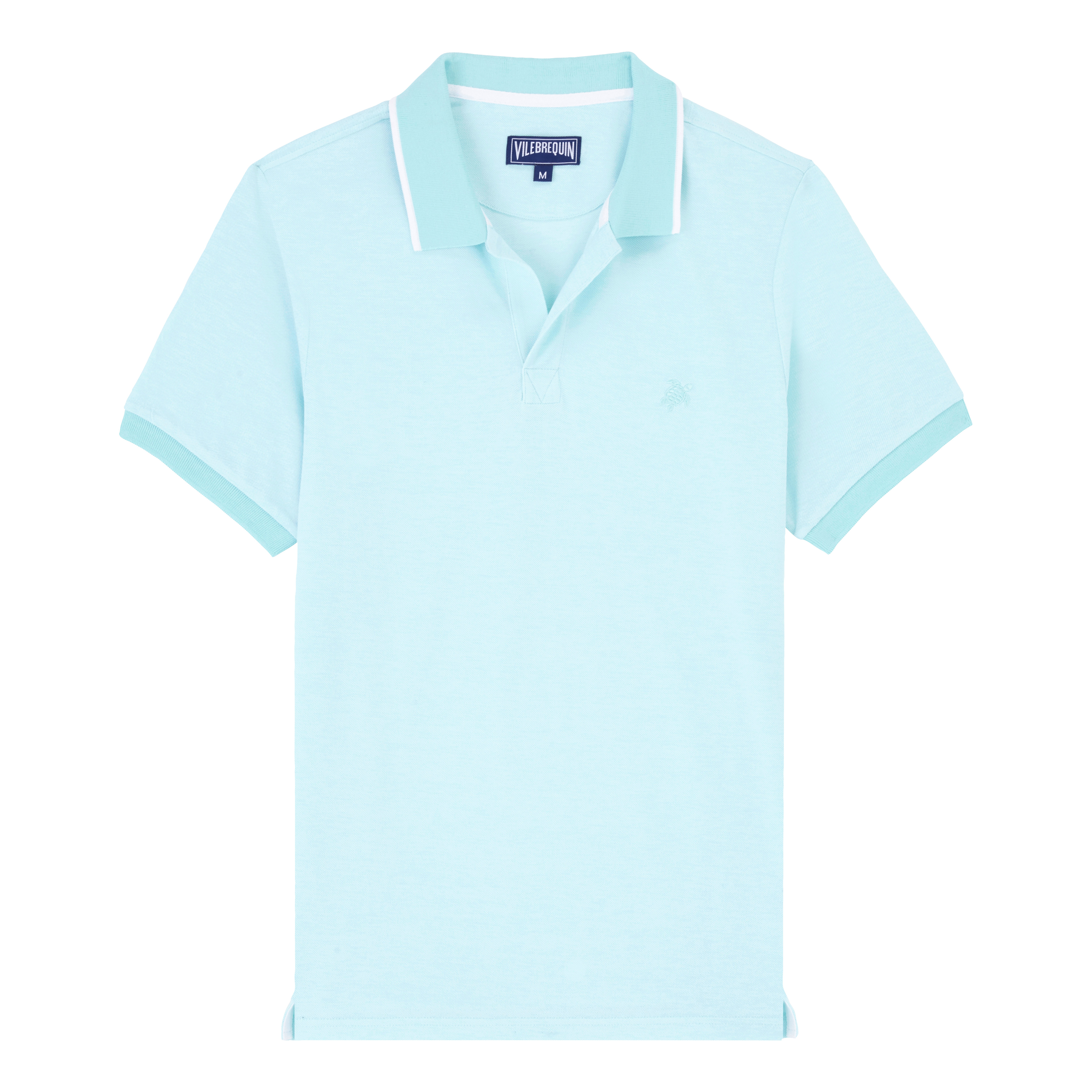 A timeless addition to the summer wardrobe, this organic cotton polo features ribbed cuffs and collar, short sleeves and the iconic turtle embroidered on the chest. - Cotton Pique polo with ribbed cuffs an collar - Short sleeve with no buttons on front placket - Tone on tone embroidery turtle Logo on chest and printed "Vilebrequin" logo under collar - center back Signature pair of eyelets - Colour changing thread worked into the contrasts of the collar - Middle back Length for a size M: 27.75" - Men Polo - Men Polo Solid - 100% Organic Cotton