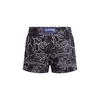 A distinctive pair of men's swim shorts adorned with the iconic Vilebrequin Poulpes octopus. Finished with zamac-engraved tips on the drawstring and featuring an elasticated waistband for comfort. - Short printed swim trunks for men - Elastic waistband - Drawstring, zamac tips engraved Vilebrequin - Side pockets - Side lenght in size M: 12" - Inseam in size M: 3,15" - The model is 6'1.62" and wears a M size - Men Swim shorts - Men Swim shorts Poulpes - 98% recycled polyester 2% elastane Product Information Style: Manta Model: MTACF504-990 Color: BLACK / BLACK