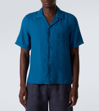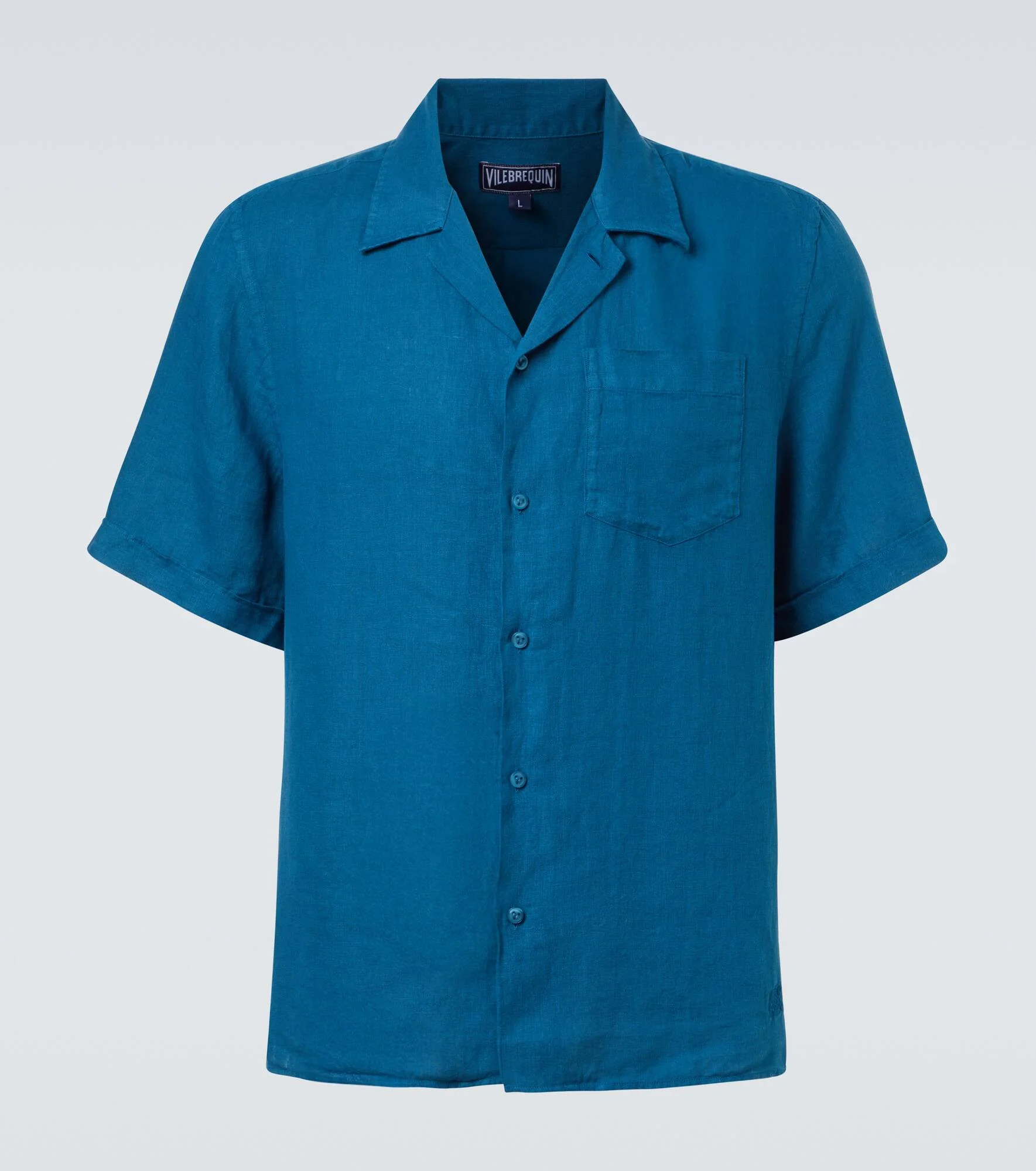 Born on the beaches of Saint-Tropez, Vilebrequin captures the relaxed spirit of effortless living. The Charli bowling shirt is made from lightweight linen. Product Details - Material: 100% linen - Care instructions: machine wash at 30 degrees - Made in Morocco - Designer color name: Paon - Item color: blue - Collar: Cuban - Pockets: angled chest pocket - Closure: buttoned front - Item number: P01113524 Size & Fit - True to size - With pleats in the back - Classic fit - Non-stretchy fabric - Falls to the hip - The model in the picture is 185cm-6'1" and wearing a size L