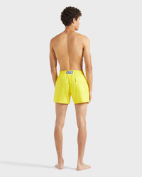 Designed in a shorter leg length for maximum tanning, these polyamide and elastane stretchy swim shorts with an elastic waistband and drawstring offer a super-comfortable fit. - Men shorter length swim trunks with stretch fabric - Elastic waistband with drawstring and zamac tips engraved Vilebrequin - Two side pockets and one rear couture pocket with velcro flap - Two back eyelets - Side leg length in size M: 14.5" - slightly shorter than the classic Moorea - Side leg length in size M: 14.5" - slightly shorter than the classic Moorea - Inseam leg length in size M: 5.7" - The model is 6'0.83" and wears a M size - Men Swim shorts - Men Swim shorts Solid - 90% polyamide 10% elastane Product Information Style: Moorise Model: MSOCE100-110 Color: SUN / YELLOW