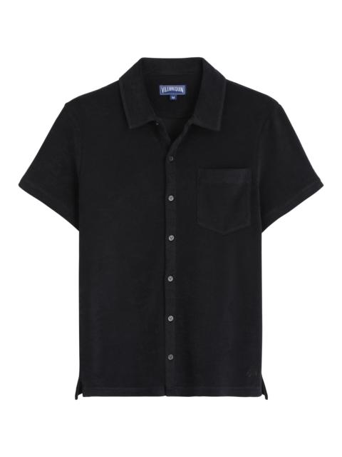 Product Detail - Bowling shirt - Short sleeves with turned back cuffs - Chest pocket - Two slits on each side - Embroidered turtle tone on tone on the bottom left - Button fastening - Middle back Length for a size M: 29.13" - Solid Men Shirt - Men Shirt - Model wears size M - Model measurements: Height 75.2”, Bust 39.4”, Waist 32.3”, Hips 39.8” - 86% Organic Cotton - 14% Polyamide Care To take care of your beloved men bowling shirt, we advise you to follow our suggestions below: - Wash your men cotton shirt at 30°C with similar colors. - Do not use oxygenated or chlorine based bleach/ stain removers, your bowling shirt won't appreciate it. - Air-dry your men bowling shirt and do not use tumble dryer. - Regular steam or dry iron inside out, with maximum setting at 150°C. - Do not dry clean your cotton shirt.
