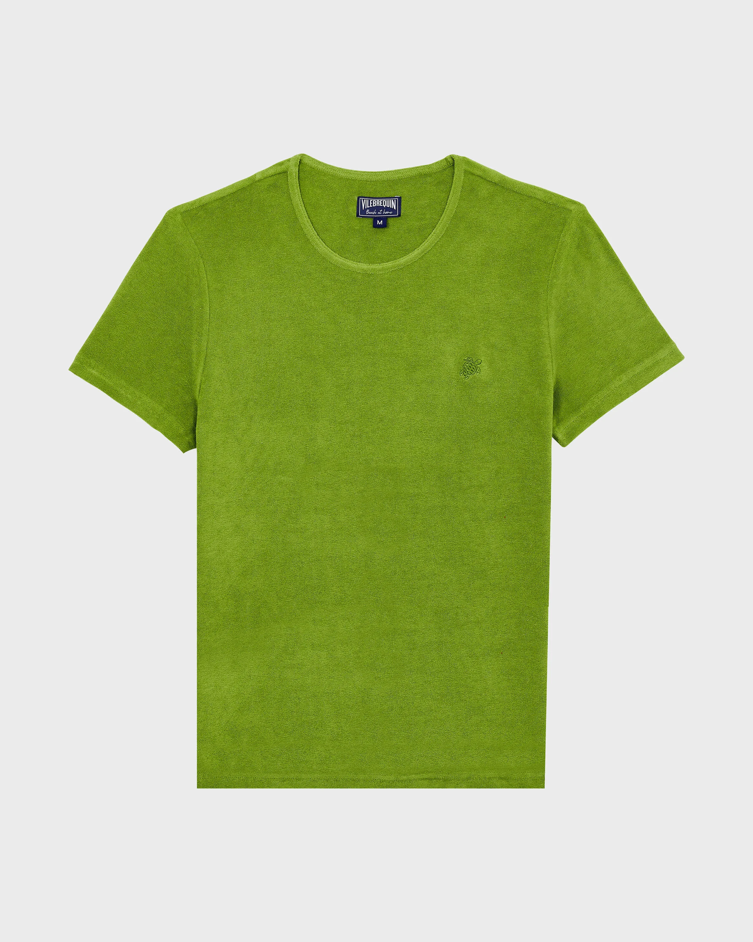 The perfect drape of the terry fabric means that the Tiramisu plain T-shirt looks just as good with Bermuda shorts or underneath a jacket. It is ideal for extremely hot days as it is virtually weightless against the skin. With short sleeves and a round neck, it goes with any kind of style: from smart to casual. A Vilebrequin turtle is embroidered in a tone-on-tone colour on the chest. - Round neck - Short sleeves - Tone on tone embroidered turtle on chest - T-Shirt - Solid T-Shirt - 100% Organic cotton Product Information Style: Tiramisu Model: TIRC3Q02-427 Color: CAMOUPLAGE / GREEN