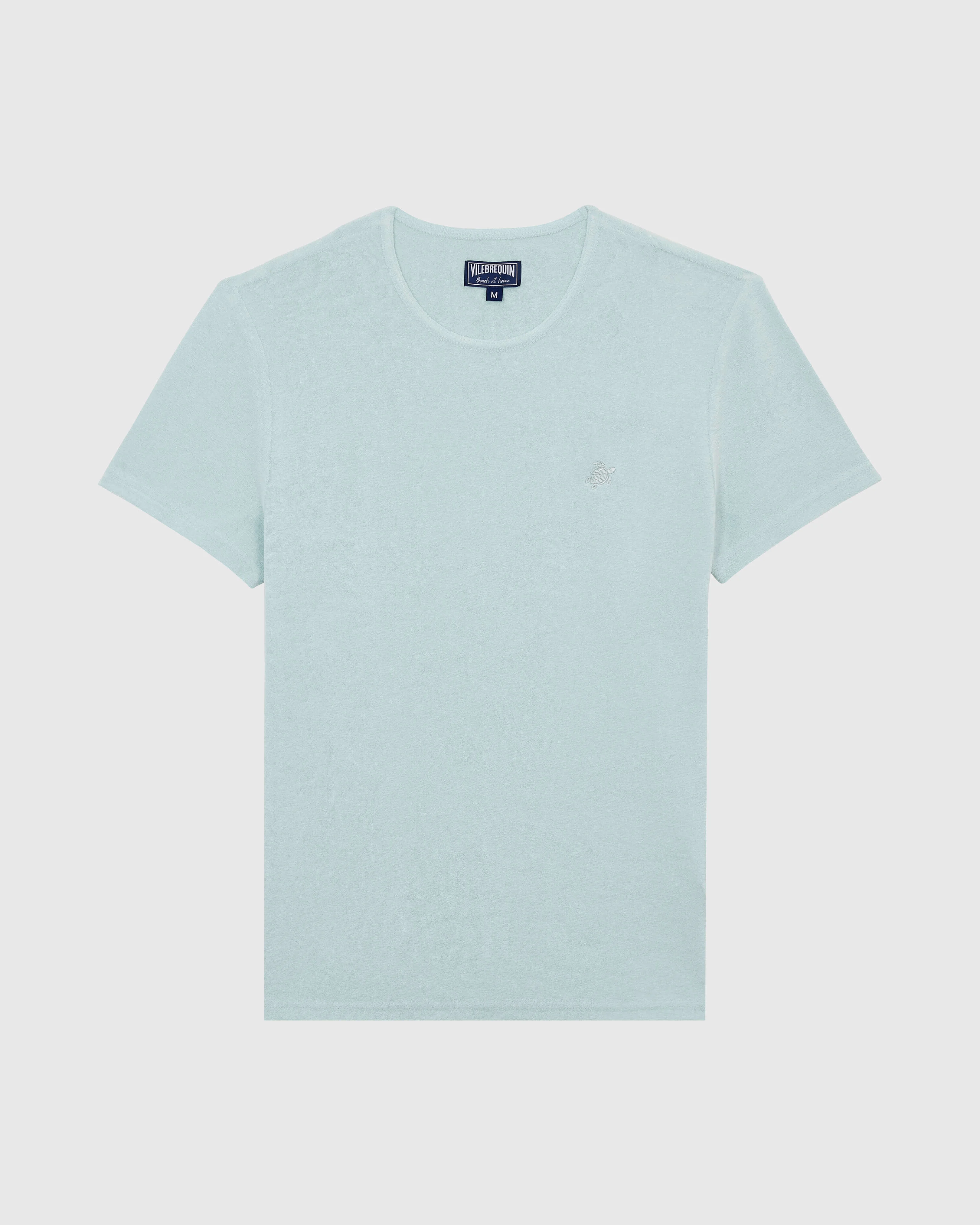The perfect drape of the terry fabric means that the Tiramisu plain T-shirt looks just as good with Bermuda shorts or underneath a jacket. It is ideal for extremely hot days as it is virtually weightless against the skin. With short sleeves and a round neck, it goes with any kind of style: from smart to casual. A Vilebrequin turtle is embroidered in a tone-on-tone colour on the chest. - Round neck - Short sleeves - Tone on tone embroidered turtle on chest - T-Shirt - Solid T-Shirt - 100% Organic cotton Product Information Style: Tiramisu Model: TIRC3Q02-315 Color: PACIFIC / BLUE