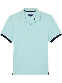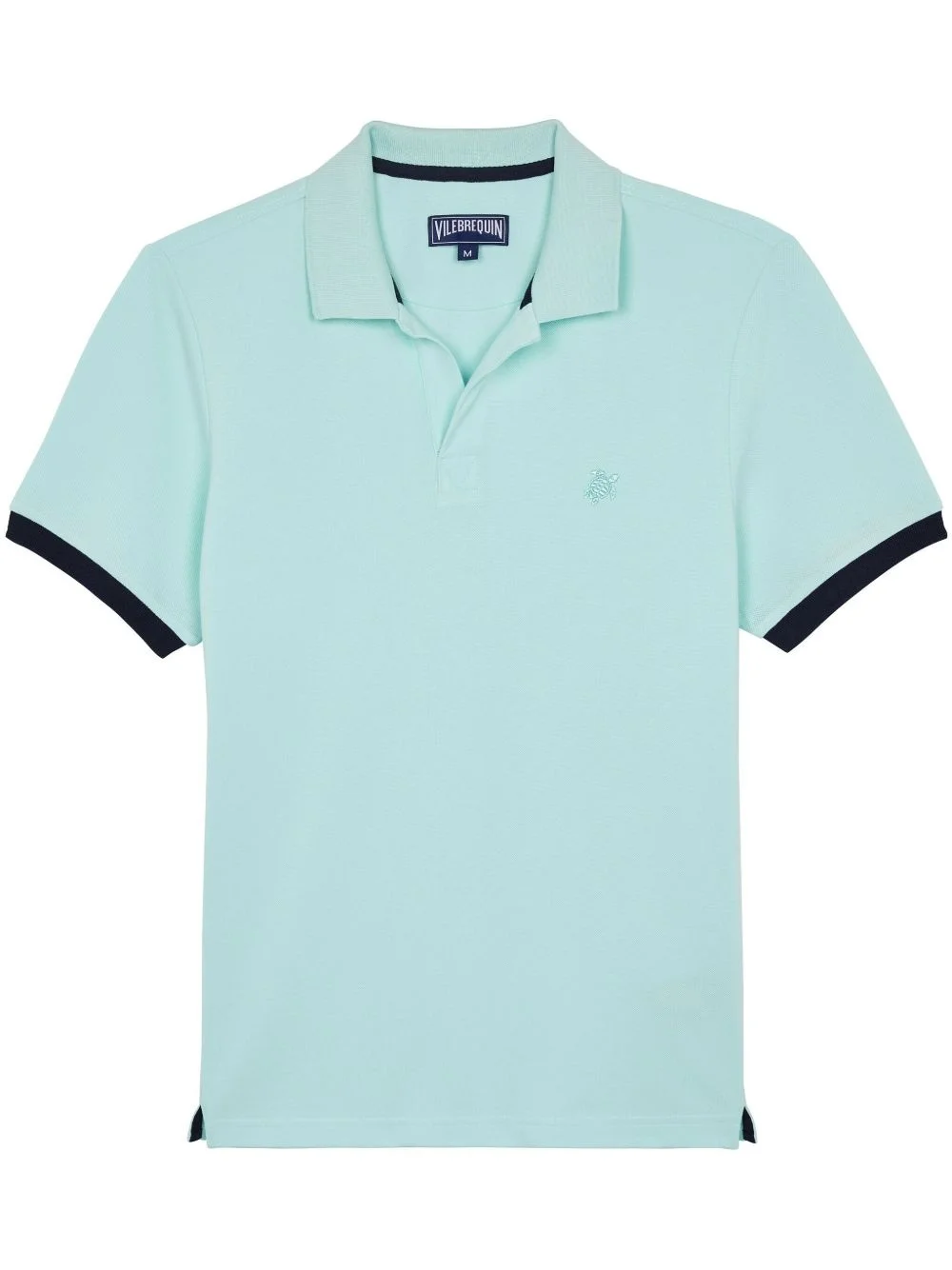turtle-embroidered polo shirt Highlights - Pacific blue - Polo collar - Short sleeves - Contrasting cuffs Imported Composition Organic Cotton 100% Washing instructions Read Manufacturer Guidelines