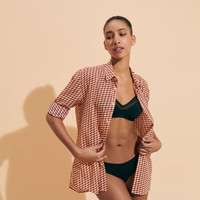 Don't be fooled by the simple grid pattern of the Caracal organic cotton voile shirt. Gingham from afar, herringbone up close, this new print hides a flight of micro-gulls in tightly serried rows. A shirt for men or women that is true to the brand’s Saint-Tropez spirit - Straight-cut, slightly fitted, long-sleeved shirt for both men and women - Shirt featuring a classic French collar - Caracal shirt with chest patch pocket - Tone-on-tone embroidery of the Vilebrequin turtle on the bottom of the shirt - Micro Mouettes organic cotton veil shirt A pleasant-to-wear, gender-neutral, lightweight shirt - Caracal shirt in soft and lightweight cotton voile A quality shirt made to last - The elements (from the thread to the buttons) of this shirt for men and women are crafted to withstand washes. - Model wears size M - Model measurements: Bust 39.8”, Height 73.6”, Waist 30.7”, Hips 36.6” Composition of the Caracal shirt: - 100% Organic Cotton