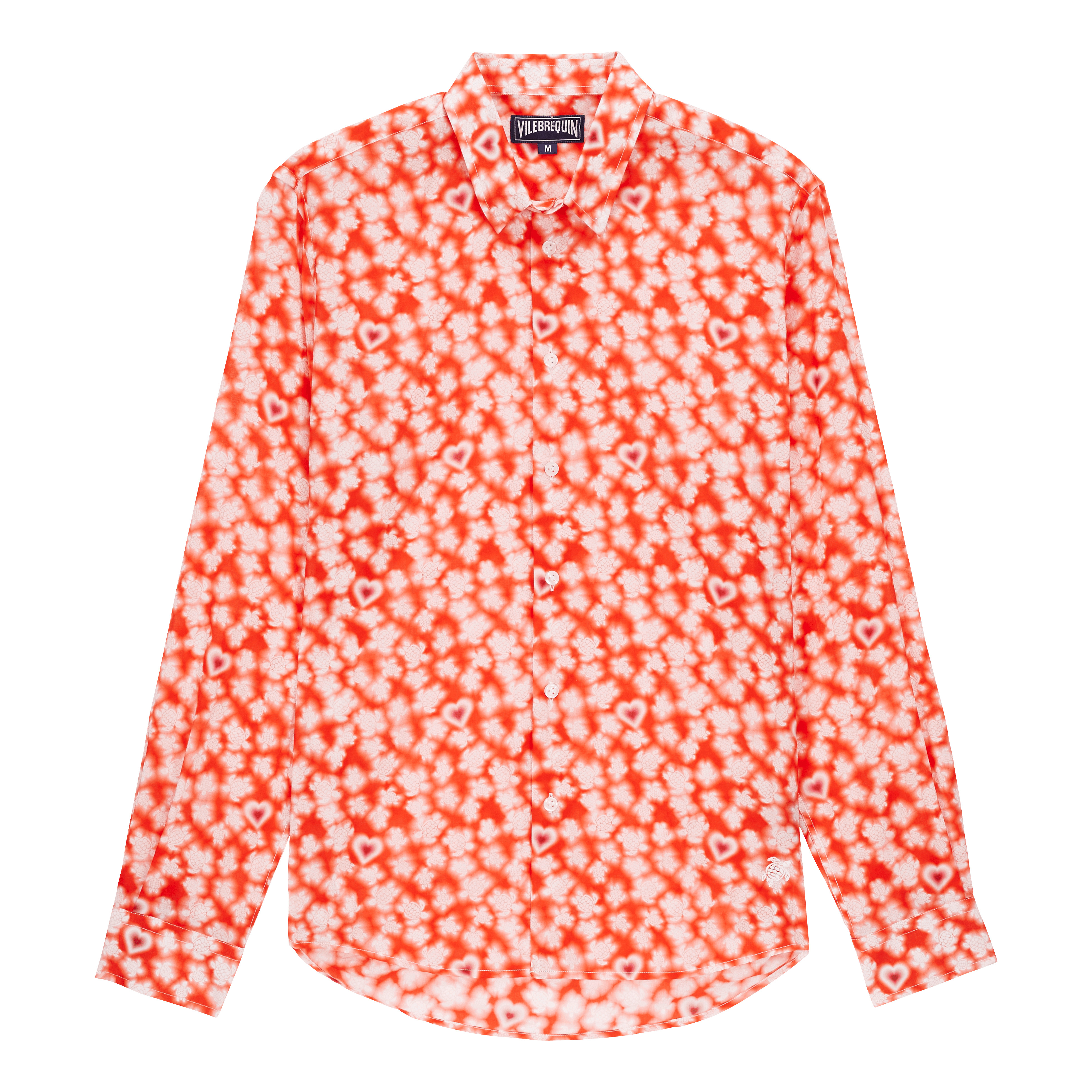 Turtles turn into Cupids on this Caracal Catchers lightweight unisex cotton voile shirt. Its playful patterns and piquant hue will goes with any look, whether it's for the beach or the evening. An embroidered Vilebrequin turtle is hidden among the hearts. A shirt for men and women synonymous with holiday chic - Straight-cut, slightly fitted, long-sleeved shirt for both men and women - French-collar shirt - No pocket on the chest - Tone-on-tone embroidery of the iconic Vilebrequin turtle on the bottom of this Caracal shirt - Attrape Coeur cotton voile shirt - Special Valentine's Day print A lightweight and very pleasant-to-wear shirt - Airy and soft cotton-voile shirt A high-quality lightweight shirt - The quality of this Caracal shirt, from the thread to the buttons, guarantees that it will withstand the test of time. - Model wears size M - Model measurements: Bust 39.4”, Height 72.4”, Waist 32.2”, Hips 35” Composition of the Caracal shirt: - 100% Cotton organic