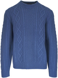 cable-knit sweater Highlights - Pacific blue - Crew neck - Long sleeves - Ribbed cuffs and hem Made in United States Composition Wool 100%