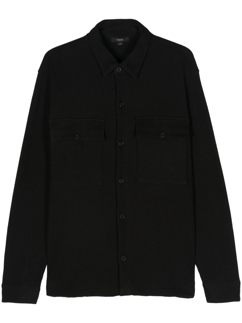 chunky waffle-knit shirt jacket Highlights - Black - Cotton blend - Chunky waffle knit - Front button fastening - Button-fastening pocket - Classic collar - Two chest flap pockets - Long sleeves - Buttoned cuffs - Straight hem Made in Italy Composition Cotton 83%, Polyester 17% Washing instructions Machine Wash