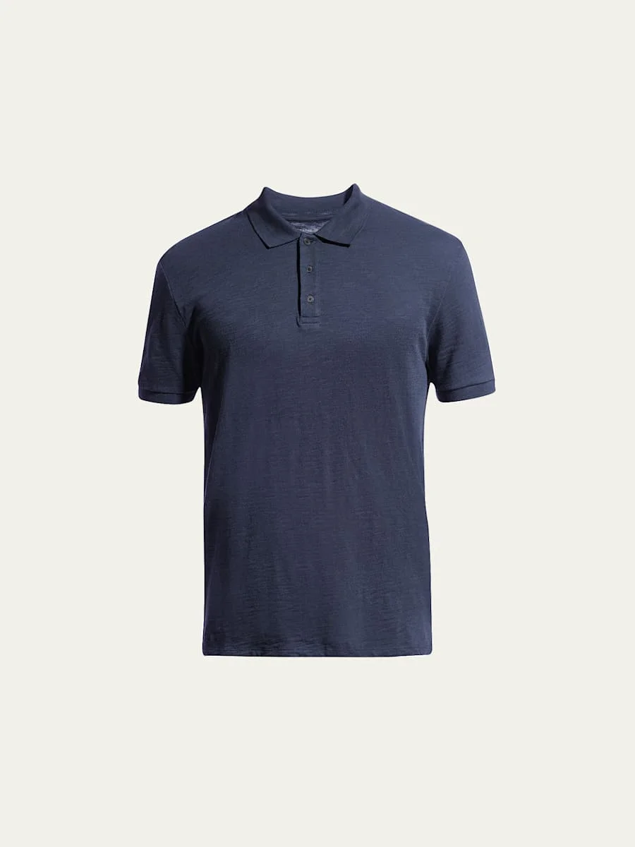 Vince classic polo shirt in slub knit. Approx. length: 28" Spread collar; three-button placket. Short sleeves; ribbed cuffs. Slim fit. Pullover style. Cotton. Machine wash cold Imported. Size Note: Model height: 6'2/ inseam 34”/ waist 30” Model is wearing size medium Online Inquiries: BGS21_NEPU8| Store Inquiries: #2149819