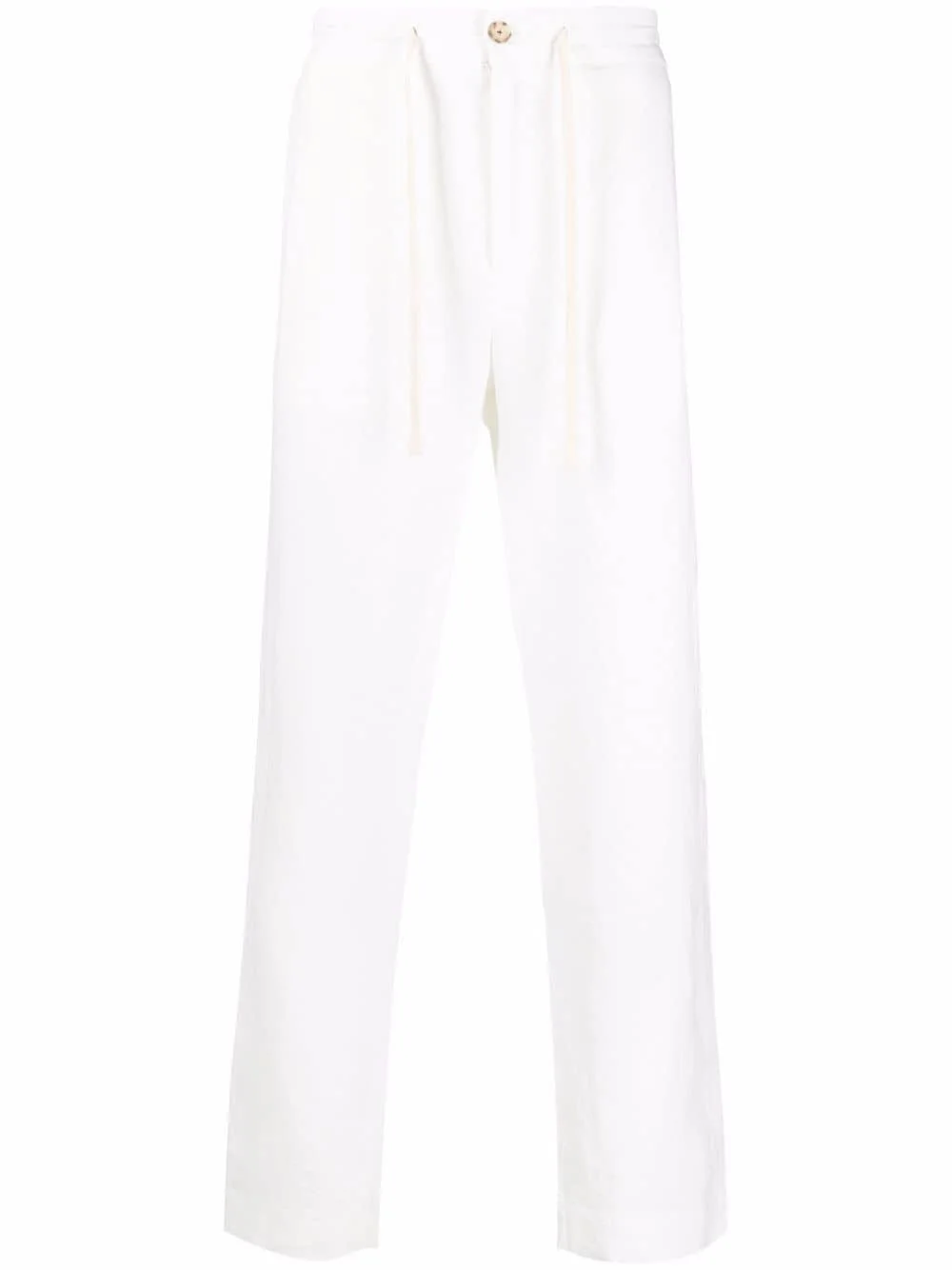 drawstring straight-leg trousers Highlights - Light beige - Hemp - Elasticated drawstring waistband - Front button and zip fastening - Straight leg - Two side slit pockets - Two rear patch pockets Imported Composition Hemp 100% SIZE & FIT Model measurements Height 6 ft 2 in(1.87 m) Bust/Chest 36.41 in(92.5 cm) Hips 37 in(94 cm) Waist 29.52 in(75 cm) FittingInformation This piece fits true to size. We recommend you get your regular size Designed for a slim fit at the waist and loose over the leg Made with a mid-weight non-stretch fabric