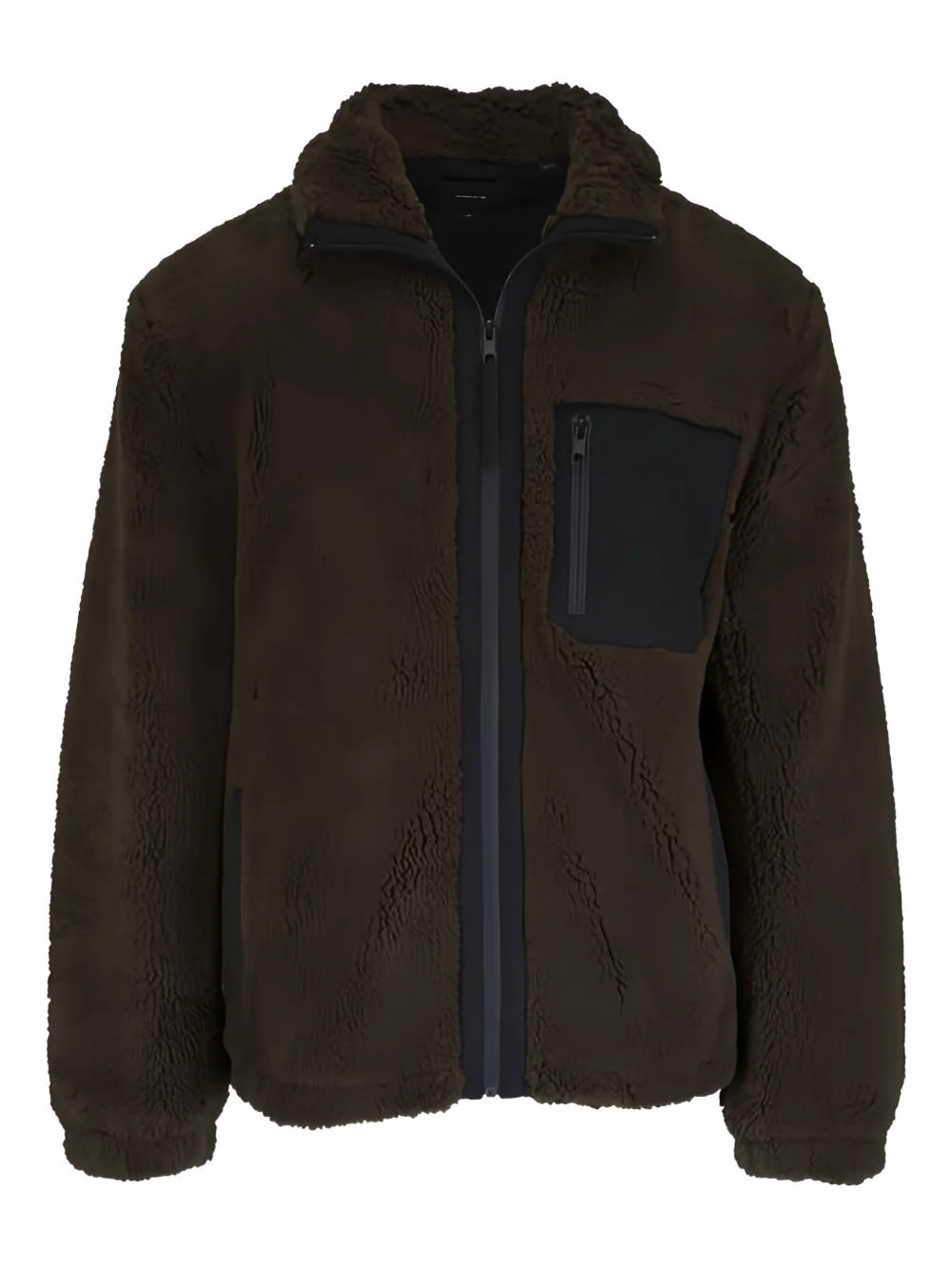 zip-up sherpa fleece jacket Highlights - Dark brown - Fleece texture - Zip fastening - Chest patch pocket - Long sleeves Imported Composition Outer: Polyester 100% Lining: Cotton 100%, Polyester 55%, Viscose 45% Washing instructions Machine Wash