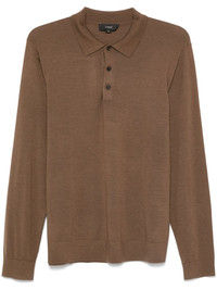 fine-knit polo shirt Highlights - Camel brown - Merino wool - Fine knit - Front button placket - Polo collar - Long sleeves - Ribbed cuffs and hem Imported Composition Merino 100% Washing instructions Hand Wash