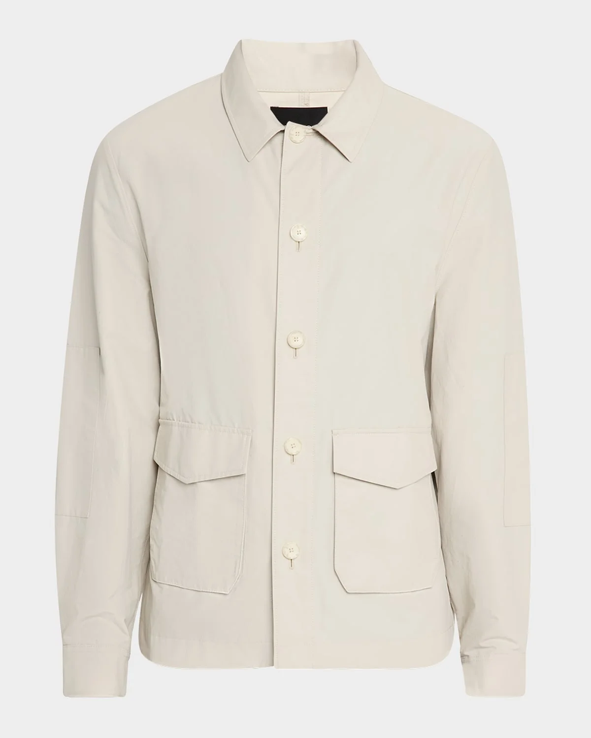 - Vince utility jacket cut from lightweight tech cotton-nylon - Spread collar - Tonal button-front closure - Stitched elbow patches - Single-button cuffs - Large flap patch pockets - Cotton/nylon/polyamide - Machine wash cold, tumble dry - Imported