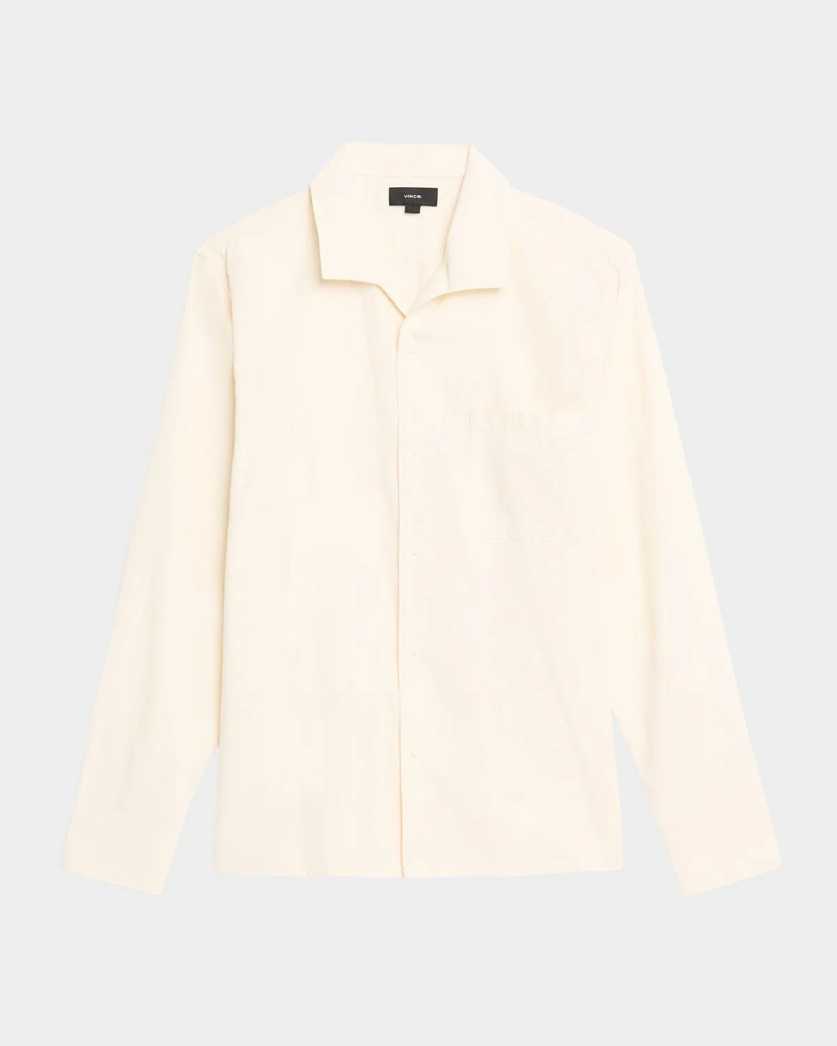 - Vince casual button-down shirt in cotton chambray for a soft handfeel - Spread collar - Button placket - Long sleeves - Round barrel cuffs - Curved hem - Classic fit - Cotton - Machine wash cold, line dry - Imported