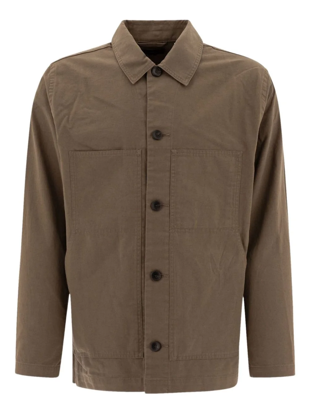 button-front patch-pocket jacket Highlights - Brown - Cotton linen blend - Button closure - Patch pockets - Collared neckline - Long sleeves Imported Composition Cotton 84%, Linen/Flax 16% Washing instructions Read Manufacturer Guidelines