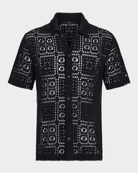 Men's Crochet Button-Down Shirt