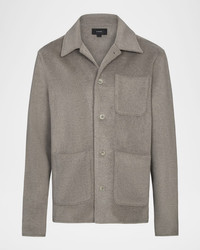 This Vince utilitarian chore jacket is softened through a brushed doubleknit fabric that boasts a warm, sumptuous feel. Notch collar Button front Interior patch pocket Three front patch pockets Polyester/viscose Dry clean, machine wash cold Imported