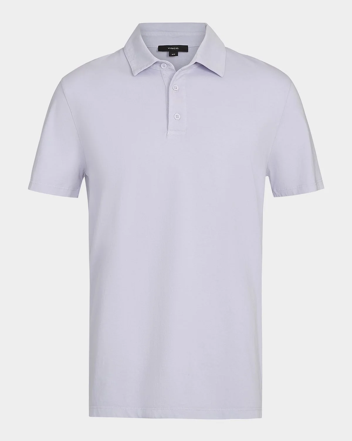 - Vince polo shirt, garment-dyed for broken-in feel. - Spread collar; three-button placket. - Vented hem. - Pullover style. - Cotton. - Made in USA.
