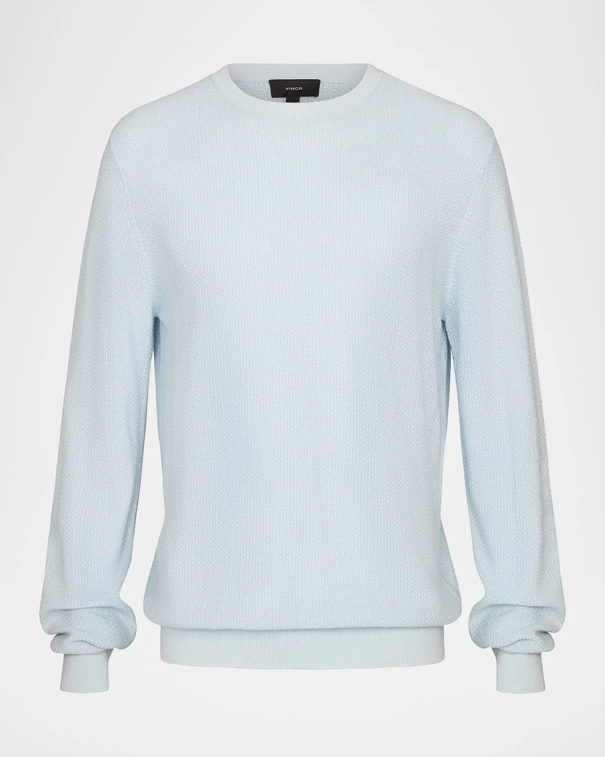 Vince sweater in geometric jacquard Crew neckline Long sleeves Ribbed trim Pullover style Wool/cotton/cashmere Hand wash or dry clean Imported