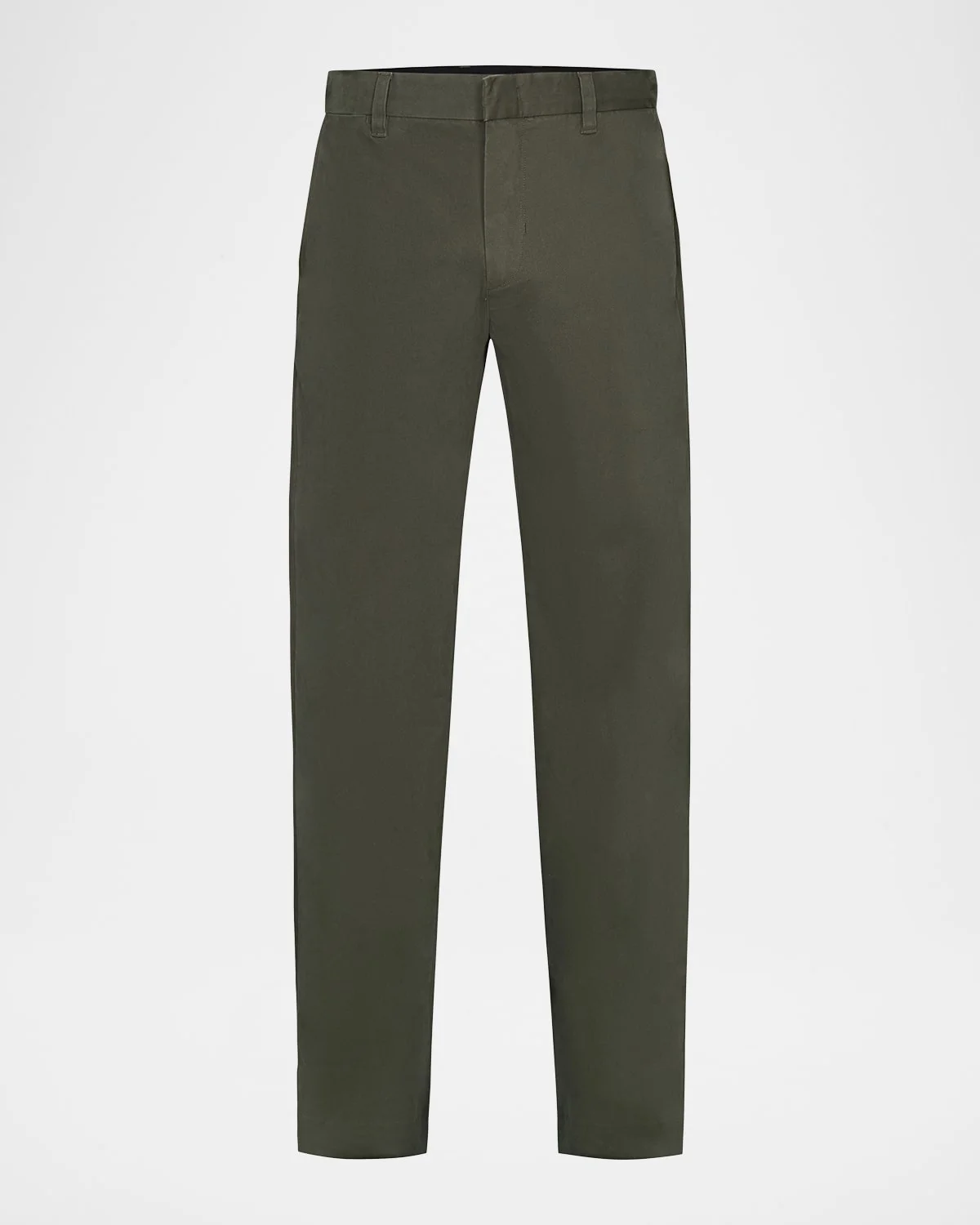 Vince "Owen" pants in peached cotton with a hint of stretch Regular rise Side slip pockets Back welt pockets Full length Relaxed fit through straight legs Cotton/elastane Machine wash cold Imported