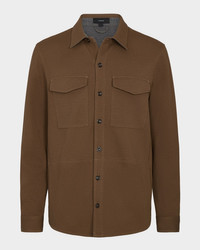 - Vince solid shirt jacket with contrast lining at collar and cuffs - Spread collar; button front closure - Two flap pockets at chest - Side slip pockets - Regular fit - Long sleeves - Curved hem - Cotton/polyester - Imported - Model is 6'1"/185cm.