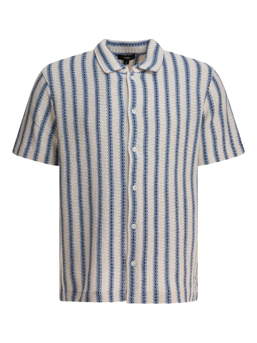 striped short-sleeve shirt Highlights - Blue - Stripes - Button fastening - Short sleeves - Collared neck Imported Composition Cotton 80%, Polyester 19%, Acrylic 1% Washing instructions Read Manufacturer Guidelines