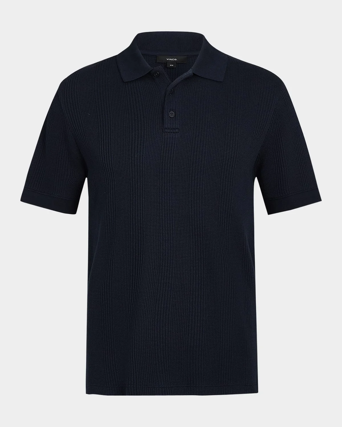 - Vince polo shirt in variegated textured stripes - Three-button placket - Cuffed short sleeves - Classic fit - Pullover style - Cotton - Wash separately - Made in Peru - Model is 6'1"/185cm.
