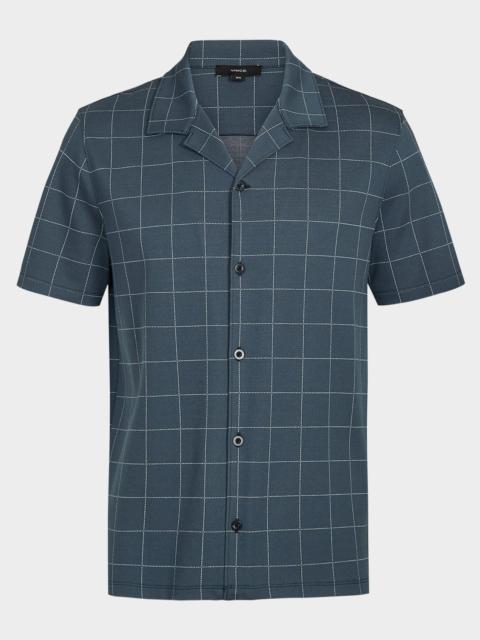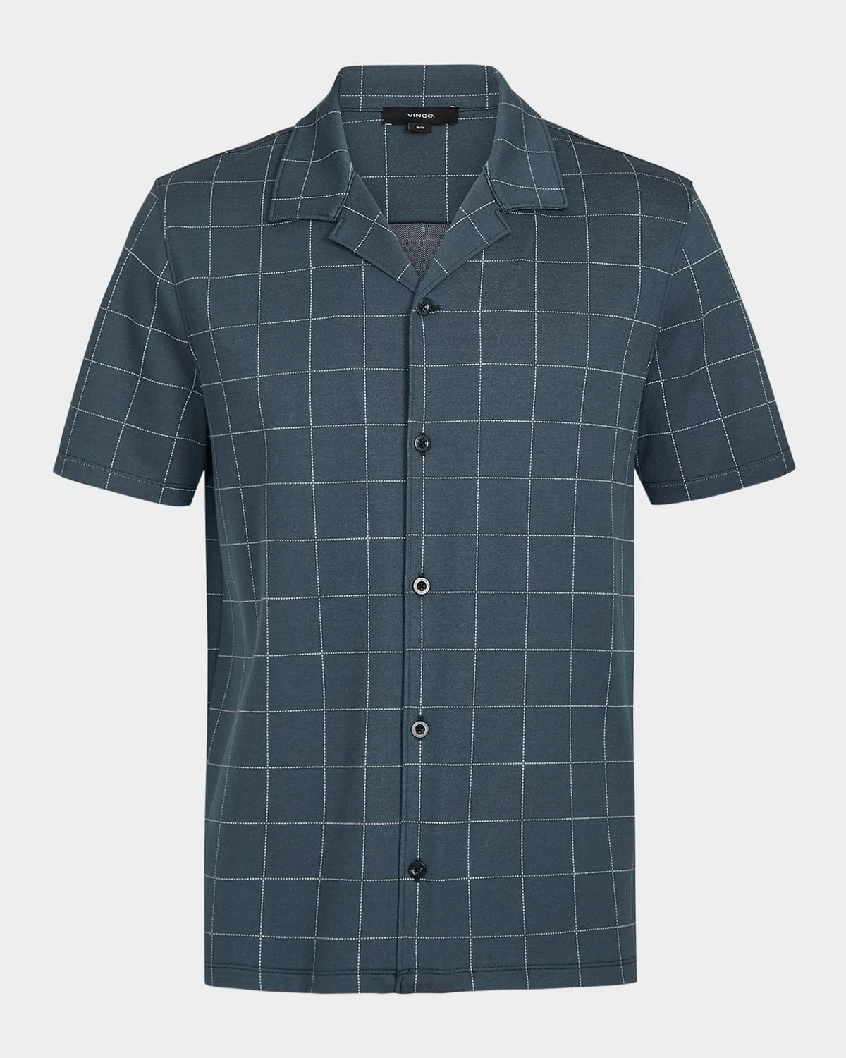 - Vince cabana shirt in a cotton blend highlighted by a spohisticated windowpane check - Notch collar - Button placket - Short sleeves - Back yoke - Classic fit - Cotton/nylon - Machine wash cold, line dry - Imported