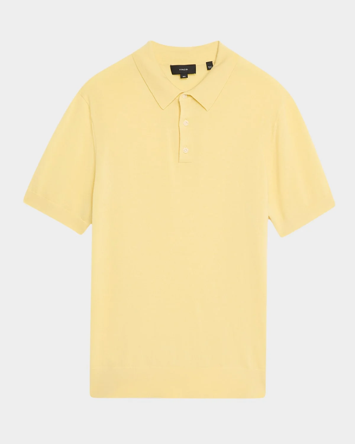- Vince polo shirt in lightweight, fine-gauge knit - Classic collar - Three-button placket - Short sleeves - Finely ribbed armbands and hem - Merino wool/cashmere - Hand wash or dry clean - Imported