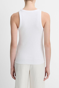 DETAILS AND INSIGHT Vince scoop neck in optic white. 49% MODAL 49% COTTON 2% SPANDEX Dry clean Made in Peru Style V018884418-137OWT