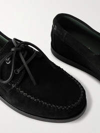 VINNY's footwear is handmade by skilled craftspeople. This pair of boat shoes is cut from suede and has hand-stitched uppers. The soles are cushioned for comfort and support. Large to size. See Size & Fit notes. Size & Fit - Fits large to size. Take a full size smaller than normal - Only available in full sizes, go down to the nearest whole size if you take a half size - European sizing Details & Care - Black suede (Cow) - Lace-up