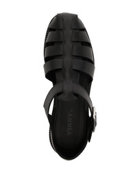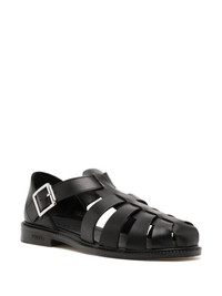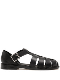 leather fisherman sandals Highlights - Jet black - Leather - Smooth grain - Caged design - Branded insole - Round toe - Buckle-fastening ankle strap - Flat rubber sole Imported Composition Leather 100% SIZE & FIT Measurement HEEL 0.78 in(2 cm) Sole height 0.39 in(1 cm)