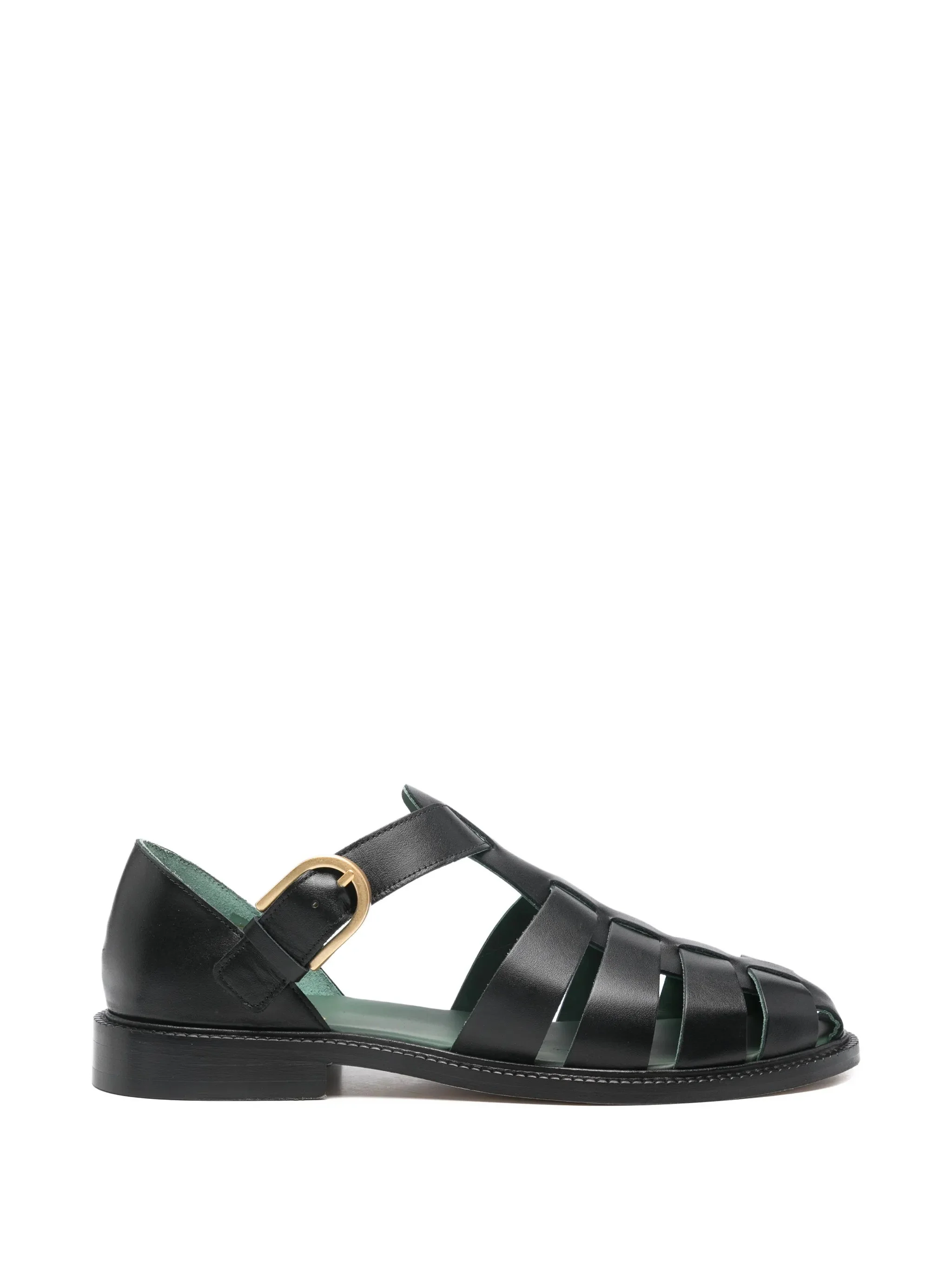 black buckle fastening woven strap detail flat sole - Color: BLACK - Made in: Portugal - Designer Style ID: 127-03-999 Composition and care Outer Composition Calf Leather: 100.0%, Lining Composition Calf Leather: 100.0%, Sole Composition Calf Leather: 100.0%