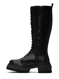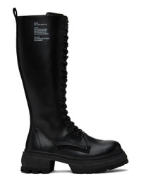 Handcrafted knee-high PETA-certified buffed Appleskin™ faux-leather boots in black. Text printed at outer side. · Lace-up closure · Logo printed at padded tongue · Zip closure at inner side · Pull-loop at heel collar · Logo embossed at heel counter · Textured rubber midsole · Treaded rubber outsole Supplier color: Black
