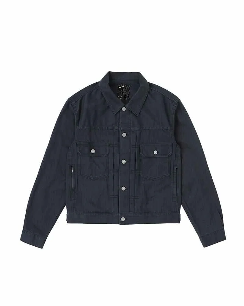 101 JKT COLOR: BLACK, INDIGO, GREY SIZE: 1, 2, 3, 4, 5 A Chino Cloth Jacket made from a densely woven long staple cotton Damaged Finish Red Selvedge Zip closure side pockets Original fastener slider, Copper buttons and rivets Natural dyed buckskin patch 100% COTTON UNIT:cm Please be aware that the vintage fabric, bandanas, blanket, and african indigo fabric used may vary in color and pattern from item to item. With time, these fabrics may also become weaker and less tear-resistant. Also, due to the use of natural dyes, the outward appearance of items may vary slightly from one another. For certain items, mud may be applied for an added effect. Products may shrink slightly when washed. SIZE LENGTH CHEST SHOULDER SLEEVE 1 57 99.5 46.5 59.3 2 59.5 104.5 48.5 60.8 3 62 109.5 50.5 62.3 4 64.5 114.5 52.5 63.8 5 67 119.5 54.5 65.3