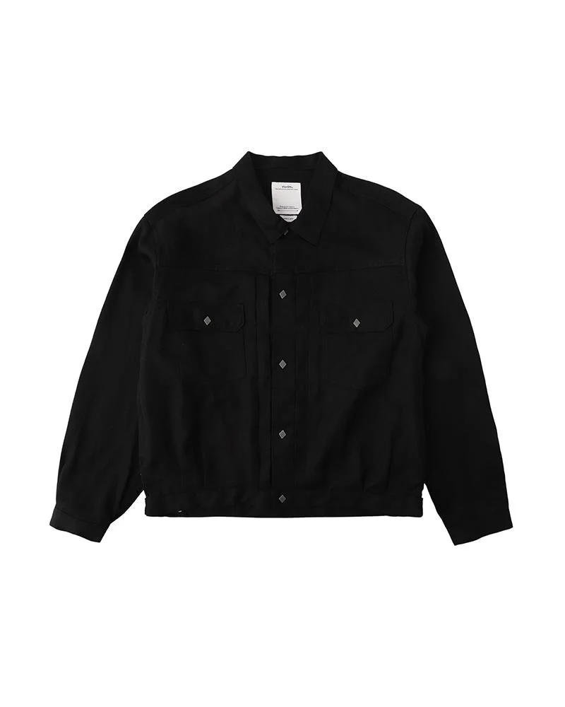 101XX JKT COLOR: BLACK, OLIVE, BEIGE SIZE: 1, 2, 3, 4, 5 A Jacket made from a woven Wool/Linen back satin fabric Pressed Finish Side Pocket zip fastener details Custom zip fastener / Custom Snap Buttons / Rivets Natural Dyed Deerskin Patch details 64% LINEN 36% WOOL UNIT:cm : Please be aware that there may be slight variations in the color of the fabric and pattern than shown in the images. There will be slight shrinkage when washing for the first time. SIZE LENGTH CHEST SHOULDER SLEEVE 1 63 116.5 53.6 58.2 2 65.5 121.5 55.6 59.7 3 68 126.5 57.6 61.2 4 70.5 131.5 59.6 62.7 5 73 136.5 61.6 64.2