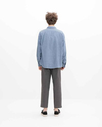 1920 SHIRT L/S DMGD COLOR: INDIGO, BROWN SIZE: 1, 2, 3, 4, 5 Cotton/Silk Chambray Shirt Skein Dyed Indigo (INDIGO) Damaged Finish Custom bone buttons 56% COTTON 44% SILK UNIT:cm Please be aware that there may be slight variations in the color of the fabric and pattern than shown in the images. There will be slight shrinkage when washing for the first time. SIZE LENGTH CHEST SHOULDER SLEEVE 1 71.8 123 57.4 56.1 2 74.3 127 58.9 57.6 3 76.8 131 60.4 59.1 4 79.3 136 62.4 60.6 5 81.8 141 64.4 62.1