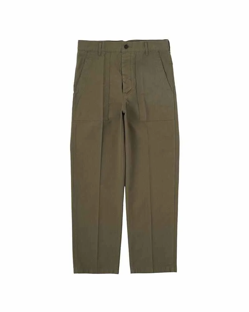 ALDA PANTS COLOR: NAVY, OLIVE, KHAKI SIZE: 1, 2, 3, 4, 5 Densely woven long staple weathercross work pants One-wash finish Custom water buffalo buttons Original cinch back Please Note : 100% Cotton SIZE 1 : Length 101.7 , Inseam 71.1 , Waist 82 , Thigh width 32.3 , Hem 20.5 (cm) SIZE 2 : Length 104.2 , Inseam 73.1 , Waist 87 , Thigh width 33.5 , Hem 21.7 (cm) SIZE 3 : Length 106.7 , Inseam 75.1 , Waist 92 , Thigh width 34.7 , Hem 22.9 (cm) SIZE 4 : Length 109.2 , Inseam 77.1 , Waist 97 , Thigh width 35.9 , Hem 24.1 (cm) SIZE 5 : Length 111.7 , Inseam 79.1 , Waist 102 , Thigh width 37.1 , Hem 25.3 (cm) The color and pattern of the fabric used may differ slightly from the image. Some shrinkage may occur after washing. Please be aware.