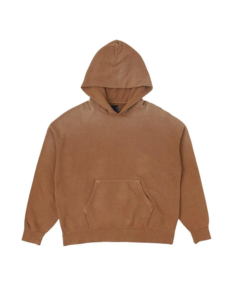 AMPLUS SB HOODIE P.O. DMGD COLOR: BROWN, BLUE, GREEN SIZE: 1, 2, 3, 4, 5 Garment Dye Pullover Hoodie Drop Shoulder Silhouette Garment Dyed Damaged Finish 100% COTTON UNIT:cm : Please be aware that the vintage fabric, bandanas, blanket, and african indigo fabric used may vary in color and pattern from item to item. With time, these fabrics may also become weaker and less tear-resistant. Also, due to the use of natural dyes, the outward appearance of items may vary slightly from one another. For certain items, mud may be applied for an added effect. Products may shrink slightly when washed. SIZE LENGTH CHEST SHOULDER SLEEVE 1 63 124 65 49 2 65 129 67 50.5 3 67 134 69 52 4 69.5 139 71 53.5 5 72 144 73 55