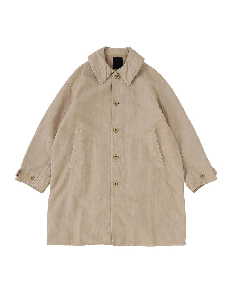 BALMAT PARKA (LINEN) COLOR: DK.INDIGO, INDIGO, BEIGE SIZE: 1, 2, 3, 4, 5 A coat made with a High Density Weave fine linen material. Garment Dyed Custom Water Buffalo Buttons 100% LINEN UNIT:cm : Items that are finished with Natural Dye will experience different textural finishes where no two are alike. Also, there may be pieces that have mud left on the finished garment as a result of the treatment. Please be aware that there may also be slight variations in the color of the fabric and pattern than shown in the images. There will be slight shrinkage when washing for the first time. SIZE LENGTH CHEST SHOULDER SLEEVE 1 96.5 130.5 58.5 56 2 99.5 134.5 60 57.5 3 102.5 138.5 61.5 59 4 105.5 143.5 63.5 60.5 5 108.5 148.5 65.5 62
