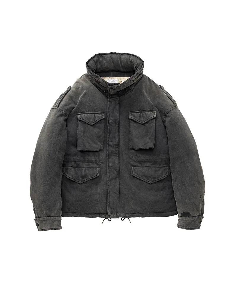 BICKLE ERA DOWN COLOR: BLACK, NAVY, OLIVE SIZE: 1, 2, 3, 4, 5 Custom French Terry Down Jacket White Goose Down Fill Garment Dyed and Damaged Finish Custom Water Buffalo Buttons, Snap Buttons, Zip Fastener, and Military Tape 100% Cotton UNIT:cm : Items that are finished with Natural Dye will experience different textural finishes where no two are alike. Also, there may be pieces that have mud left on the finished garment as a result of the treatment. Please be aware that there may be slight variations in the color of the fabric and pattern than shown in the images. There will be slight shrinkage when washing for the first time. SIZE LENGTH CHEST SHOULDER SLEEVE 1 67.5 114.5 62 54 2 69.5 118.5 63.5 55.5 3 71.5 122.5 65 57 4 74 127.5 67 58.5 5 76.5 132.5 69 60