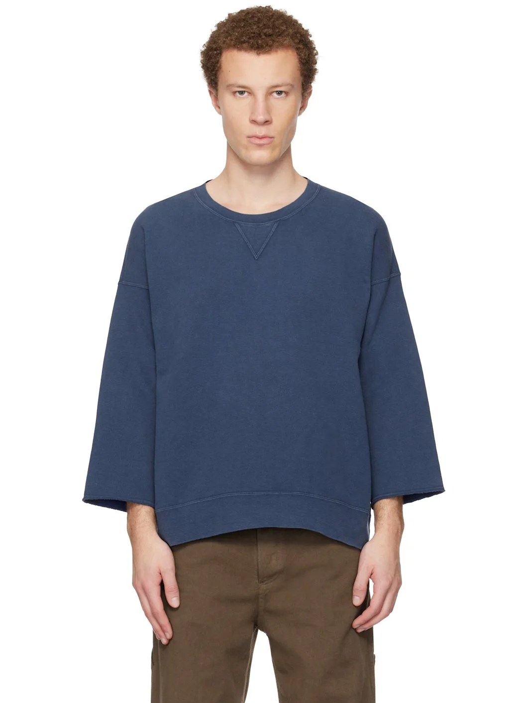 Cotton-blend French terry sweatshirt. · Rib-knit crewneck and hem · Dropped shoulders · Three-quarter sleeves · Raw edge at cuffs Supplier color: Navy 95% cotton, 5% nylon. Made in Japan 261487M204012