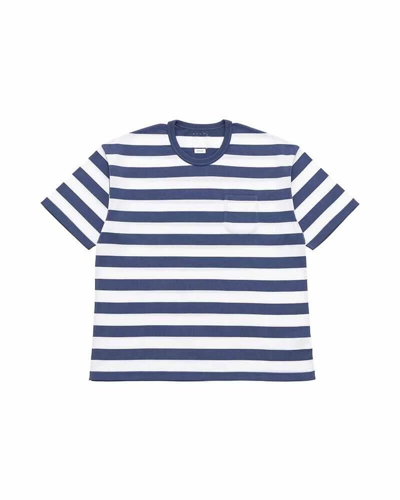 BORDER JUMBO KNIT TEE S/S (SIC) COLOR: BLACK, BLUE, OLIVE SIZE: 1, 2, 3, 4, 5 A Jumbo Knit Border Stripe T-Shirt made from Sea Island Cotton One Wash 100% COTTON UNIT:cm : Please be aware that there may be slight variations in the color of the fabric and pattern than shown in the images. There will be slight shrinkage when washing for the first time SIZE LENGTH CHEST SHOULDER SLEEVE 1 65 102 53 19.5 2 67.5 107 55 20.5 3 70 112 57 21.5 4 72.5 117 59 22.5 5 75 122 61 23.5