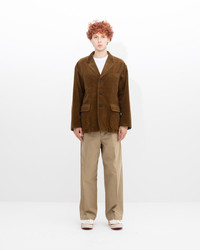 BOWEN BLAZER WOOL CORDS COLOR: BLACK, GREY, LT.BROWN SIZE: 1, 2, 3, 4, 5 Custom Corduroy Wool Cotton Blend Jacket Pressed Finish Custom Water Buffalo Buttons 100% Wool (Pile) 100% Cotton (Base Cloth) UNIT:cm : Please be aware that there may be slight variations in the color of the fabric and pattern than shown in the images. There will be slight shrinkage when washing for the first time. SIZE LENGTH CHEST SHOULDER SLEEVE 1 72 109.8 52 56 2 74.5 113.8 53.5 57.5 3 77 117.8 55 59 4 79.5 122.8 57 60.5 5 82 127.8 59 62