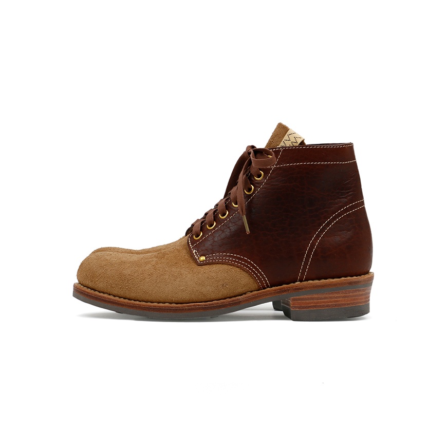 BRIGADIER BOOTS-FOLK COLOR : CAMELSIZE : 8 , 8.5 , 9 , 9.5 , 10 , 10.5 , 11 , 12 (US) UPPER : Swedish vegetable-tanned cow suede and Horween bison leatherOUTSOLE : Dainite rubber outsoleREPLACEABLE OUTSOLE : Yes Handmade Goodyear welt constructionVegetable-tanned cow leather lining Natural cork footbed Please Note : The natural leather used for this product has been specially treated to create its own unique appearance and no one product is alike. Please be aware that sizing of footwear may vary depending on the style, design, or material.