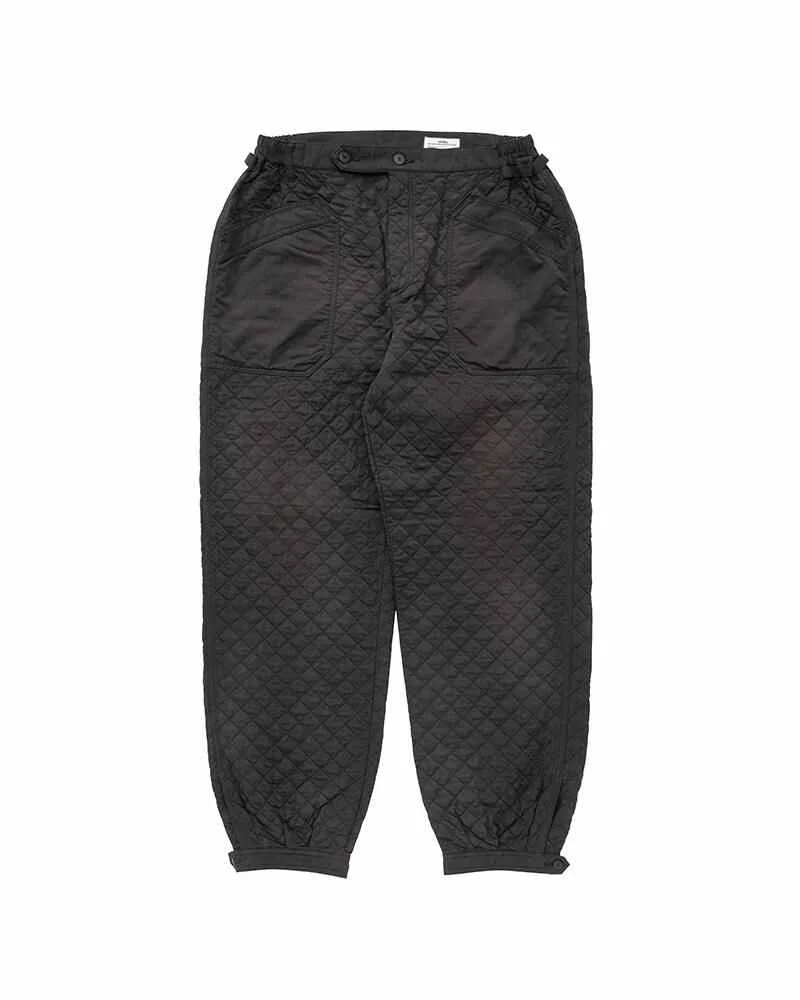 CALLAHAN PANTS COLOR: BLACK, OLIVE, GREEN SIZE: 1, 2, 3, 4, 5 A woven Nylon twill Quilted Pants Damaged Finish Natural Dye Finish Custom Water Buffalo Buttons Custom zip fastener closure 100% NYLON UNIT:cm : Items that are finished with Natural Dye will experience different textural finishes where no two are alike. Also, there may be pieces that have mud left on the finished garment as a result of the treatment. Please be aware that there may also be slight variations in the color of the fabric and pattern than shown in the images. There will be slight shrinkage when washing for the first time. SIZE LENGTH INSEAM WAIST THIGH WIDTH HEM 1 105 73.2 76 37.2 16.7 2 107.5 75.2 80 38.2 17.7 3 110 77.2 84 39.2 18.7 4 112.5 79.2 89 40.4 19.9 5 115 81.2 94 41.6 21.1