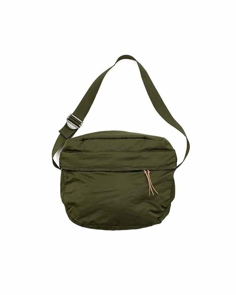 Shoulder tote bag made from high-density nylon fabric Natural dyed Swiss riri zipper Please Note: 100% Nylon H : 14.2 , W : 13.6 , D : 5.9 (inch) Due to the use of natural dyes, the outward appearance of items may vary slightly from one another. For certain items, mud may be applied for an added effect. The fabric used may vary in color and pattern from item to item.