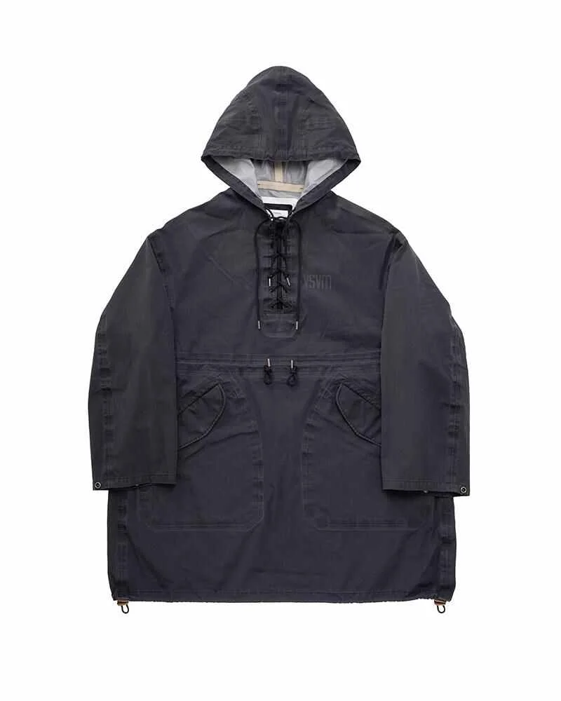 CHINOOK PONCHO 3L DMGD COLOR: NAVY, OLIVE, KHAKI SIZE: 1, 2, 3, 4, 5 A Pullover Jacket made from a densely woven oxford fabric of fine gauge cotton yarn applied with 3L laminates Damaged Finish Natural Dyed Custom Logo Seam tape Custom Military Cords Custom Snap Buttons "VSVM" print details 100% COTTON UNIT:cm Items that are finished with Natural Dye will experience different textural finishes where no two are alike. Also, there may be pieces that have mud left on the finished garment as a result of the treatment. Please be aware that there may also be slight variations in the color of the fabric and pattern than shown in the images. There will be slight shrinkage when washing for the first time. SIZE LENGTH CHEST SHOULDER SLEEVE 1 97 148.5 62.5 57.2 2 99.5 152.5 64 58.7 3 102 156.5 65.5 60.2 4 104.5 161.5 67.5 61.7 5 107 166.5 69.5 63.2